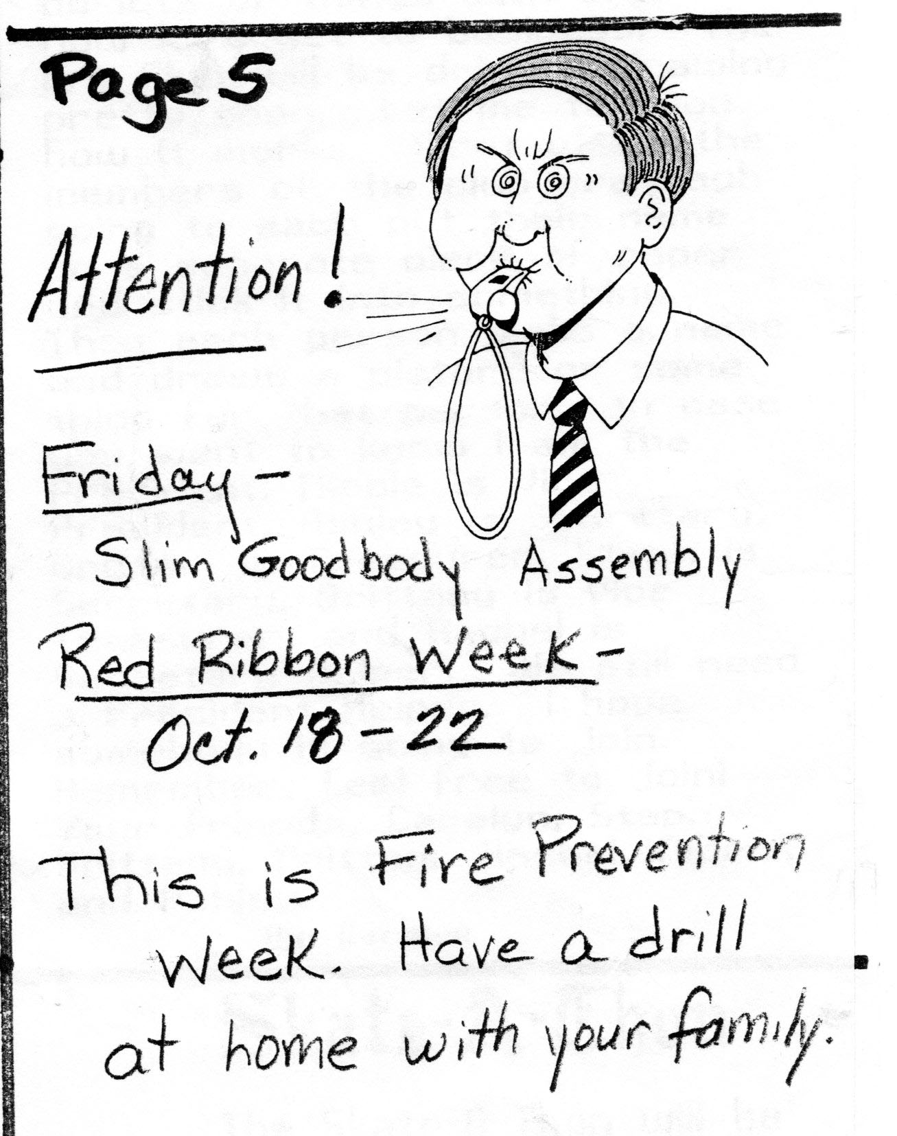 Your number one source for breaking news on such topics as: Brandon's new Nintendo game, Mrs. Gifford's car accident, the Book It! pizza party, the "weird flu" epidemic, the Slim Goodbody assembly, and much, much more!