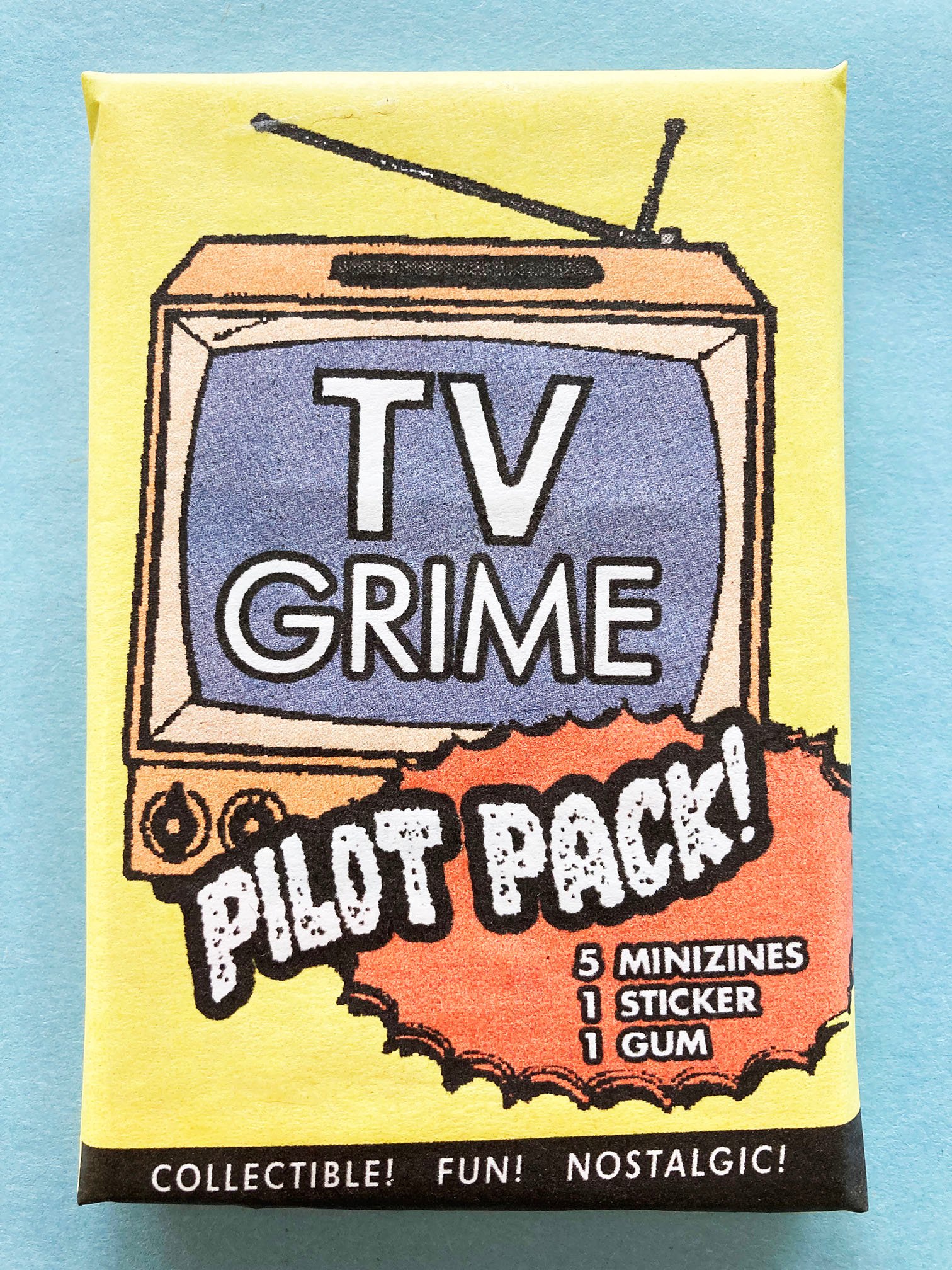 Presenting the TV GRIME Pilot Pack! Five ALL NEW 8-page mini-zines housed in a classic waxpack wrapper with bonus sticker and gum!