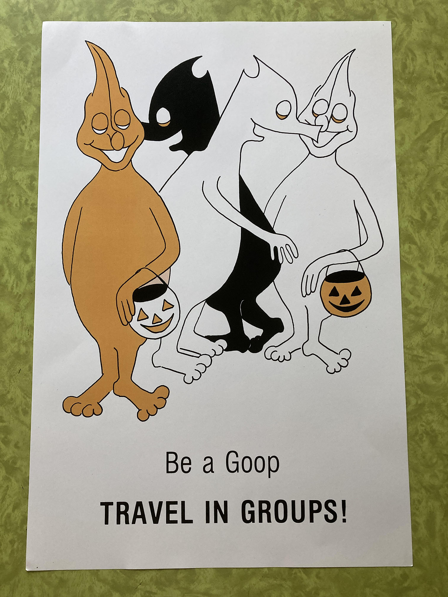 An exclusive set of 5 Halloween Safety Posters reprinted from impossible to find originals. Instills such important lessons as: Be a Goop, Be a Snark, Don't Be a Glaw, Don't Be a Snope, Don't Be a Skreed.